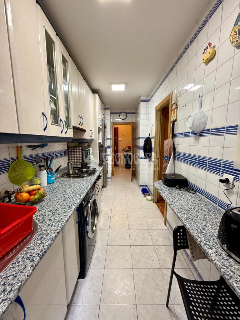 La cocina es muy amplia, con zona de comedor y acceso a una segunda terraza, lo que aporta funcionalidad y ventilación. Además, la vivienda dispone de un baño completo y un aseo, una gran ventaja para el día a día.